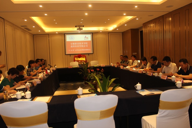 本网讯(办公室通讯员 陈晓春)亚星游戏网与安庆市嘉欣医疗用品有限公司“产学研”合作协议签约暨基地揭牌仪式于2016年8月11日在安庆举行。安徽省经信委办公室主任程英春、安庆市经信委副主任陈雅爱、安庆市经信委投资办主任赵晓东、安庆市宜秀区政府副区长江学文、宜秀区工信委主任陆超、安庆市嘉欣医疗用品有限公司董事长汪秀春、总经理王敬良,学院副院长史锋及相关学院、部门负责人及部分教师等出席了仪式。仪式由安庆市嘉欣医疗用品有限公司总经理王敬良先生主持。