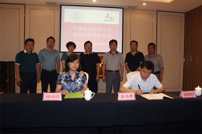 仪式上,史锋副院长代表学院向出席仪式的各位领导和嘉宾表示衷心感谢和热烈欢迎。她向与会代表介绍了学院的发展情况和办学理念,并指出,学院此次与安庆市嘉欣医疗用品有限公司结成战略合作伙伴关系,必将进一步促进学院的人才培养、科技研发和社会服务,进而实现双方资源共享、互惠双赢,从而带动学院各项事业实现新的突破。汪秀春董事长代表企业讲话,他介绍了企业的基本情况和发展趋势,感谢学院对嘉欣的信任和支持,对双方以后的合作寄予厚望,希望达到互利共赢、共同发展的目的。随后,在与会代表的掌声中,史锋副院长代表学院与汪秀春董事长签订了“产学研”合作协议,并共同为校企合作基地揭牌。