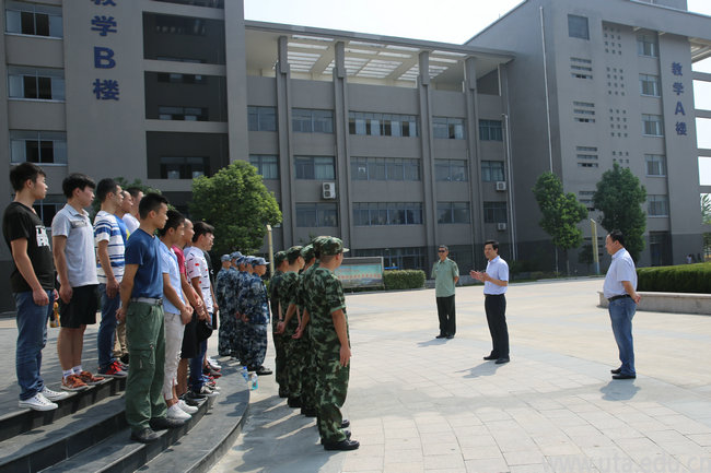 本网讯(武装部通讯员 张徽)9月13日上午,学院在日晷—惜时广场举行简短的2016年大学生入伍欢送仪式。副校长陈行以及保卫处、老校区综合办负责人参加仪式。陈行发表了热情洋溢讲话并与同学们合影留念。