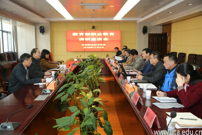 据悉,此次教育部职业教育调研组分三组分别赴我校、合肥铁路工程学院及滁州相关学院进行调研,旨在总结“十二五”以来职业教育改革发展的标志性成就,分析社会经济发展对职业教育发展的重点需求,剖析职业教育在提升社会服务能力方面所面临的机遇和挑战,梳理制约职业教育发展的突出问题和原因,为“十三五”时期提升职业教育服务能力、基本实现职业教育现代化提出政策建议。
