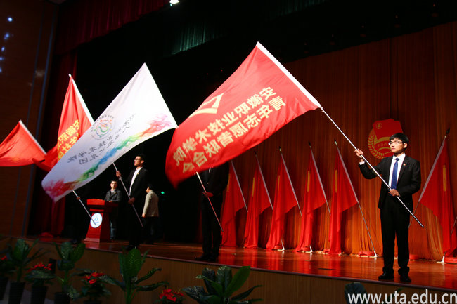 陈行为校学生会、学生团体联合会、大学生艺术团和青年志愿者联合会授旗并讲话。他代表学院党政班子对上届学生干部的辛勤和富有成效的工作表示感谢,对新一届学生干部的履任表示祝贺,同时也对学院的各级团学工作给予了充分的肯定,并对新一届的学生干部提出了六点要求。他强调作为学生干部,一要做先进思想的引领者,二要做学风建设的先行者,三要做校园稳定的维护者,四要做遵纪守法的示范者,五要做校园文化的倡导者,六要做学生利益的维护者。最后,他希望同学们紧密围绕党委学生工作总体思路,充分发挥组织青年、凝聚青年、服务青年的职能,做一名让学院放心,让学生满意、让家长骄傲的优秀学生干部。