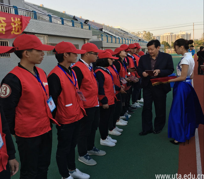 运动会闭幕式结束后,孙敬华校长特地来到志愿者当中,亲切地看望和慰问了全体志愿者,并为每一位志愿者颁发了证书。孙校长鼓励大家说:“是你们诠释了志愿者精神,是你们为大会增添了一道靓丽的风彩,是你们为运动会提供了优质的服务,保障了运动会顺利召开,我代表院领导对你们辛勤劳动和良好服务表示感谢!希望你们把志愿者精神发扬光大,以此感染、教育、引导更多的同学帮助他人、传递友爱、奉献社会,为建设美丽校园,为学院健康发展做出积极贡献”。