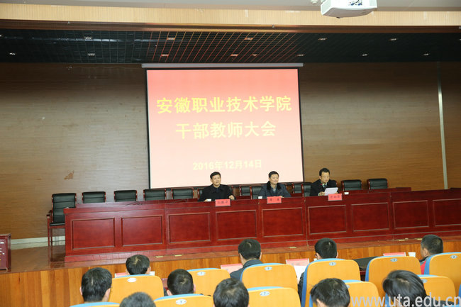 本网讯(组织部通讯员 王叶宏)12月14日下午,学院在图书馆三楼学术报告厅召开干部教师大会,对孙敬华校长试用期满进行民主考核。考核组组长、省委组织部企事业干部处副处长周军,省委教育工委组织干部处副调研员戴晓江,省委组织部企事业干部处主任科员王振华,省委教育工委组织干部处干部周乾坤出席大会。会议由党委书记亓四华主持。校领导,党政处室中层干部,二级学院(部)党政主要负责人(含主持工作的副职),副高及以上职称人员,教代会执委参加了会议。
