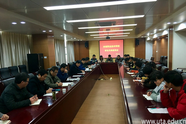 本网讯(团委通讯员 沈天明) 为广泛了解同学们在学院学习、生活中存在的问题,帮助同学们解决生活、学习、成长等方面所遇到的各种困难,关注学生思想动态,了解学生真实需求,12月16日中午,学院在图文信息中心10会议室召开全校学生代表座谈会。学院校长孙敬华、学院相关处室负责人和30名学生代表参加了座谈会。