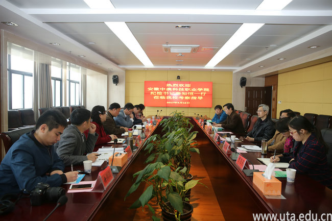本网讯(校工会通讯员 贾亮亮)4月12日,中澳科技职业学院党委委员、纪检书记秦知恒一行来我校考察交流,校纪委书记蒋永忠热情接待了客人,学院人事处、工会等部门负责人和相关人员参加了座谈交流,座谈会由工会主席刘健主持。