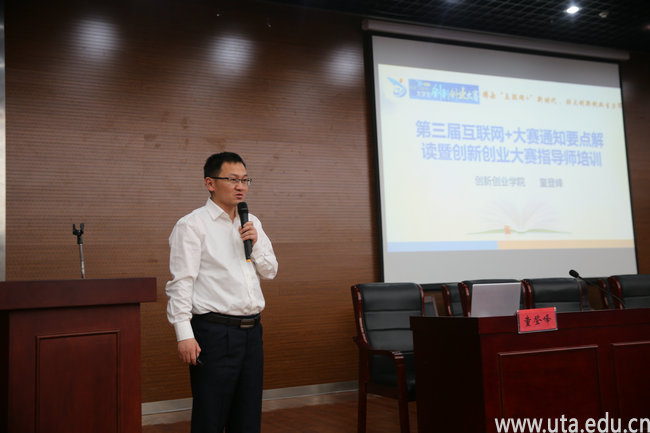最后,大赛辅导培训老师童登峰解读此次“互联网+”创新创业大赛的相关要求并对参赛指导教师和学生进行赛前辅导。至此,我校第三届“互联网+”创新创业大赛的帷幕正式拉开。
