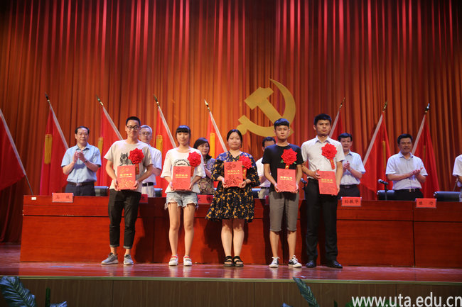 会上对6个先进基层党组织、10名优秀党务工作者、25名优秀共产党员进行了表彰。财经商贸学院党总支书记叶鸽、机关第一党总支王丹分别代表获奖党组织和党员发言。大会还组织了部分预备党员进行入党宣誓。