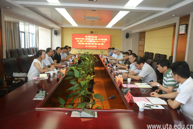 苏春年对学院的热情接待表示衷心感谢,对学院改革发展和教育教学管理取得的成绩给予了充分称赞。他就吉林铁道职业技术学院办学情况与此行目的作了简要介绍。会上,与会人员还就相关工作进行了深入细致的探讨与交流。