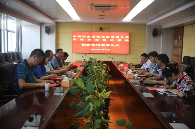 本网讯(机械工程学院通讯员 周福静)7月18日下午,学院与合肥凯泉电机电泵有限公司在图文信息中心九楼会议室隆重举行校企合作“凯泉班”签约仪式。新站区人社局副局长刘大清,凯泉公司副厂长王东进、人事部经理李萍等企业相关负责人,副校长史锋,机械工程学院负责人参加了签约仪式。仪式由机械工程学院副院长郑家房主持。