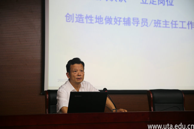 会上,孙敬华作辅导员班主任培训会动员报告,他从为什么要办培训班、培训的内容和方法、培训工作的要求三个方面,为本学期辅导员班主任培训工作做了精心部署。他希望辅导员、班主任要转变角色、遵守培训纪律、完成培训任务;要求学生处工作人员增强服务意识,做好后勤保障工作,确保培训效果。