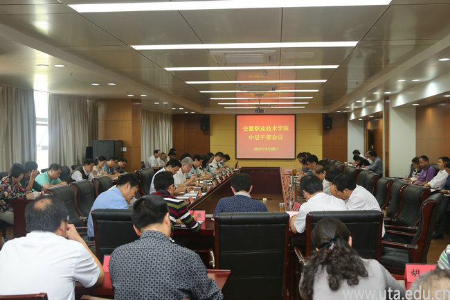 本网讯(校办通讯员 刘丽丽)9月28日,学院在十楼会议室召开中层干部会议,部署“国庆、中秋两节”、党的十九大期间及近期工作。党委书记亓四华,校长孙敬华,党委副书记、纪委书记郭淼,副校长史锋、陈行,督导员李文钢,党委委员马纯及全体中层干部参加会议。会议由孙敬华主持。