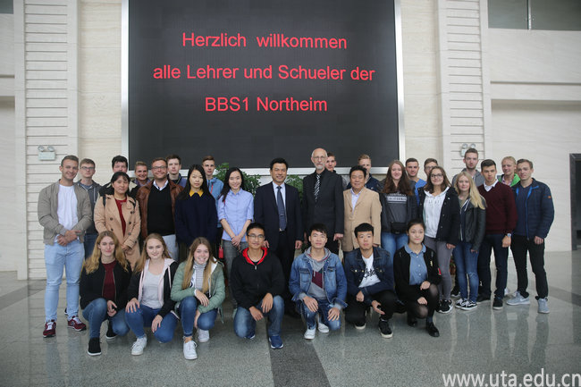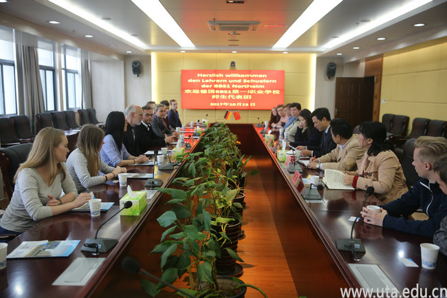 本网讯(校办通讯员 赵荃)10月15日,德国诺特海姆第一职业学院副校长Peter与该校师生一行24人来我校访问。学院副校长陈行、外事办相关人员热情接待了客人。