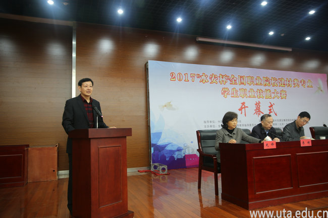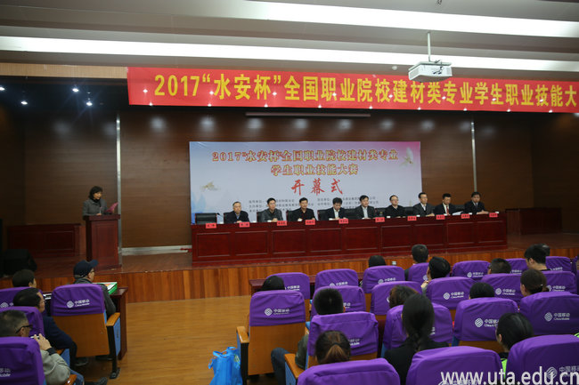 本网讯(建筑工程学院通讯员 谢金刚)11月4日,由中国建筑材料联合会指导、全国建材职业教育教学指导委员会主办、亚星游戏网承办的2017“水安杯”全国职业院校建材类学生职业技能大赛在我校成功举办。来自全国20个省区市的32所院校领队、指导教师、参赛选手共同参加了比赛。中国建筑材料联合会纪委书记周清浩,全国建材职业教育教学指导委员会秘书长李江,全国建材职业教育教学指导委员会副主任肖争鸣、朱玉春、李坚利,国家建材节能检测评价中心主任王雅明,安徽水安建设集团股份有限公司生产总监李靖,博努利(北京)仿真技术有限公司总经理王挺举,校长孙敬华、副校长史锋等领导出席大赛开幕式。