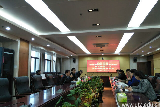 本网讯(管理学院通讯员王永囡 余观澜 杨洲)11月29日,安徽商贸职业技术学院党委副书记、院长李忠带领人文外语系主任王锦坤、文秘教研室主任钱立静等人来我校调研考察。党委副书记、院长孙敬华,管理学院院长王培俊,文秘教研室主任张徽在图文信息中心九楼会议室热情接待。本次调研交流会特邀校企合作单位天源迪科公司副总陈圣军、文秘专业专职教师、文秘专业各年级学生代表参加。