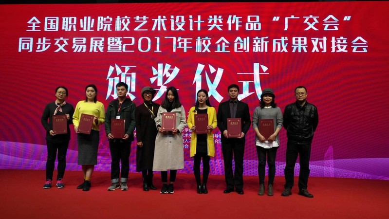 本网讯(艺术设计学院通讯员 吕慧)12月22日至24日,全国职业院校艺术设计类作品“广交会”同步交易展暨2017年校企创新成果对接会在广东广州琶洲国际采购中心举行。艺术设计学院副院长吕慧作为新一届教指委委员,带领4名教师前往展馆参加了服饰服装类作品展。通过赛前的努力训练和认真准备,我校教师张莉的作品获特等奖,并被企业有偿纳入资源库,教师指导学生作品获三个一等奖,两个二等奖。