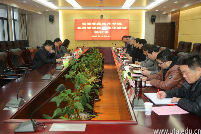 验收组一行按照标准化建设的要求逐一验收建设达标情况,认真查阅了学院党的组织设置、班子队伍建设、党员教育管理、党内组织生活、作用发挥途径、工作运行机制、基本工作保障等7个方面标准化建设情况的台账资料,详细了解了我校推进基层党组织标准化建设工作中的主要做法、成效、特色。随后,验收组随机实地查看了机电工程学院党总支、财经商贸学院党总支等2个党总支和教务处党支部等4个基层党支部的标准化建设工作台账资料、党员活动室建设情况和党员学习资料等,验收小组还进行了个别谈话,进一步了解学院基层党组织标准化建设情况。