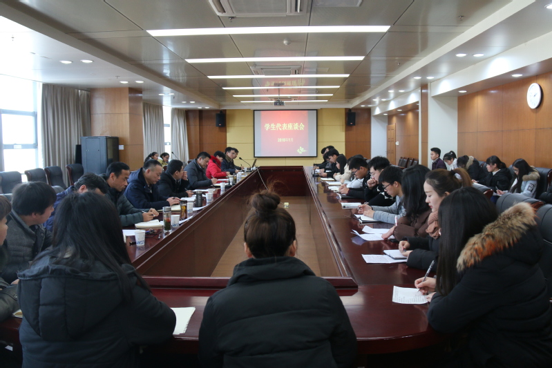 本网讯(院团委通讯员 袁娟娟)1月10日中午,学院在图文信息中心10楼会议室召开全校学生代表座谈会。副校长陈行带领党委宣传部、教务处、院团委、学生处、质量管理处、保卫处、后勤管理处等职能部门负责人与30余名学生代表进行座谈,广泛听取学生意见和建议。团委负责人蒋成义主持会议。