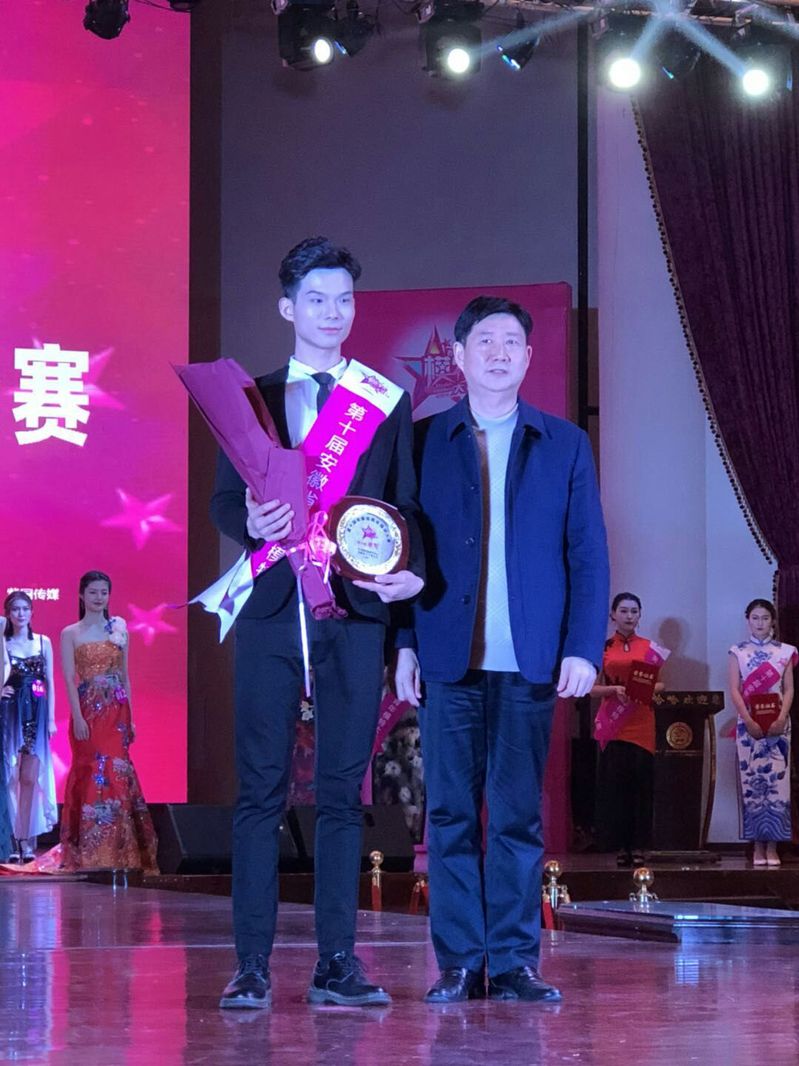 本网讯(院团委通讯员 石可)1月15日,由共青团安徽省委、安徽省青年联合会共同举办的“金岭缘杯”第十届安徽省青年模特大赛总决赛暨颁奖典礼在合肥滨湖娃哈哈大酒店举行。经过海选、分赛区决赛、全省半决赛,共有来自全省各地的30位选手进入此次总决赛,经过活力装展示、职业装展示、才艺展示和晚装展示四个环节的激烈比拼,我校计算机1623班周浩同学得到评委们的一致肯定,荣获大赛(男子组)亚军。