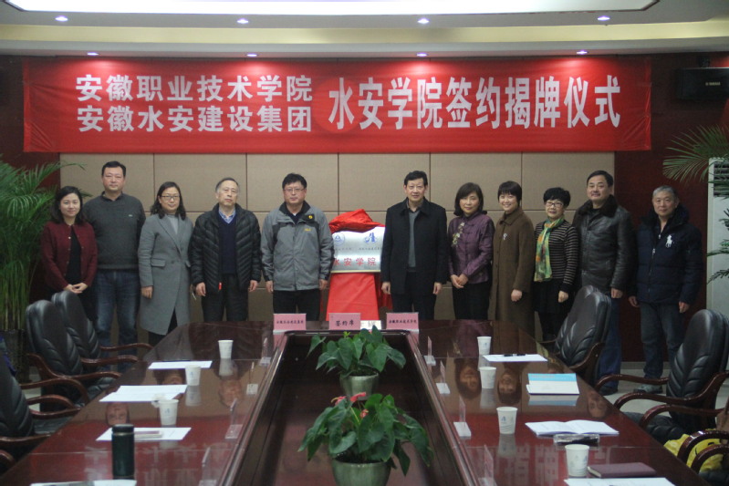 (实训中心通讯员 吴家奎)1月18日下午,学院与安徽水安建设集团共建“水安学院”签约揭牌仪式在水安建设集团隆重举行。校长孙敬华、副校长史锋,校实训中心、铁道学院、建筑工程学院、机电工程学院相关负责人,安徽水安建设集团董事长薛松、生产总监李靖及水安集团相关部门负责人出席。会议由李靖主持。