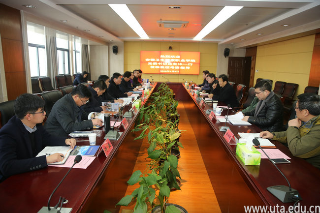 本网讯(校办通讯员 刘丽丽)3月6日下午,安徽卫生健康职业学院党委书记范有华、纪委书记江锡富一行9人到我校进行考察交流。党委书记亓四华热情接待了客人一行。党委副书记、纪委书记郭淼及相关部门负责人参加座谈会。