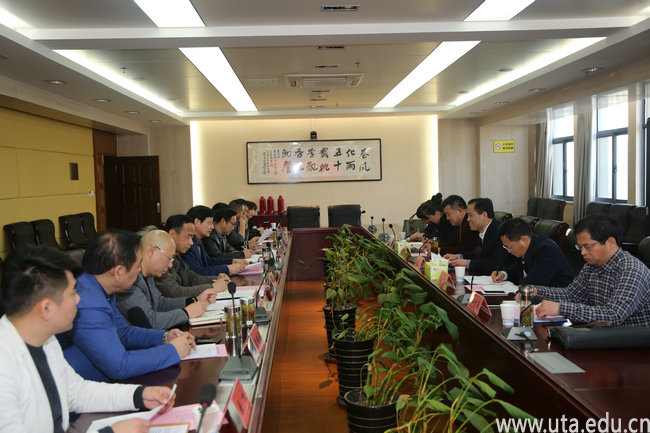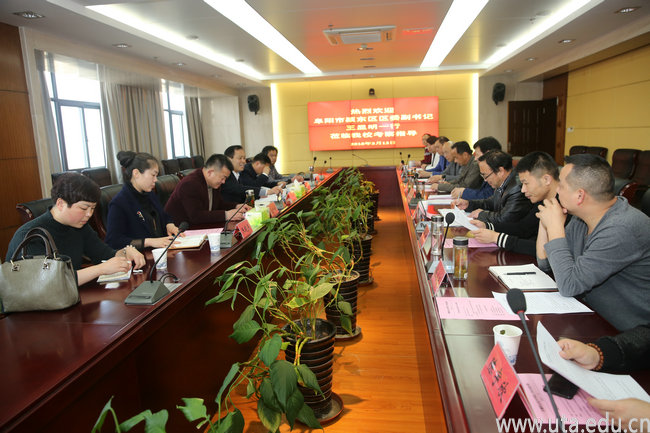 本网讯(后勤管理处通讯员 许兴旺)3月13日下午,阜阳市颍东区区委副书记王显明带领颍东区商务局、农委、扶贫办、商厦中心等部门负责人来我校商讨高校食堂面向贫困县(市、区)定向采购农产品(以下简称“面向采购”)事宜。校长孙敬华热情接待了客人一行。后勤管理处负责人及在校经营的各餐饮公司负责人参加了座谈会。