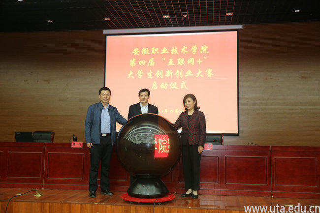 陈行宣读《关于举办亚星游戏网第四届“互联网+”创新创业大赛的通知》文件。财经商贸学院教师杜淑琳,管理学院学生王朝阳,分别作为教师代表与学生代表发言。