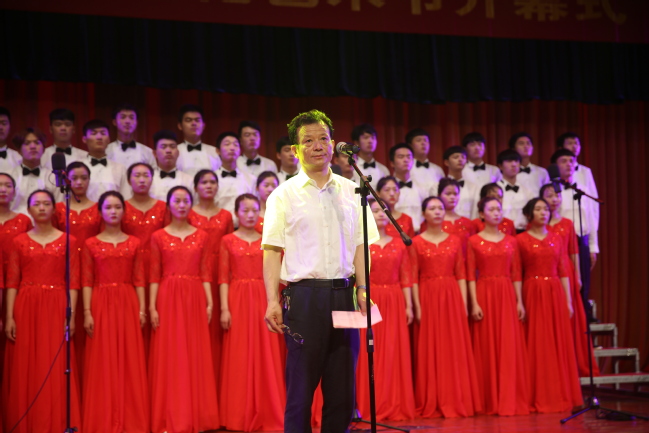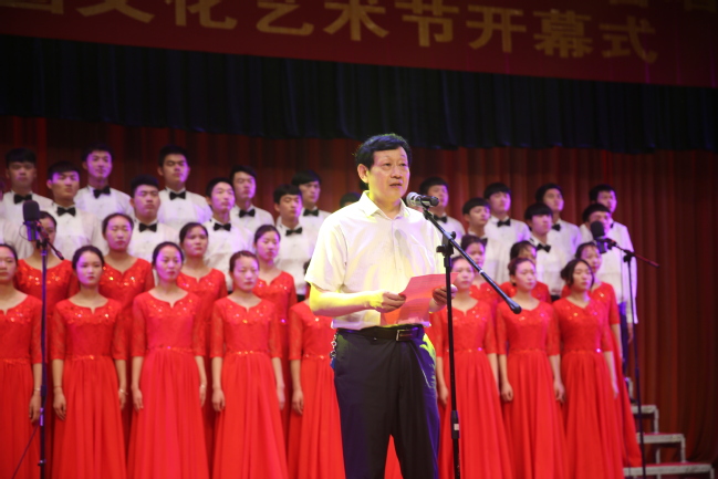 亓四华宣布学院第四届“五月的鲜花”合唱比赛暨第十四届校园文化艺术节开幕。