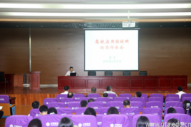 陈行以“高校应用性材料的写作体会”为题,为大家上了一堂精彩的应用性材料写作课。他以生动鲜活的案例开场,从应用性材料的种类和特点、写作的基本要求、写作方法、写作特征及常见错误五个方面进行了系统的阐述,并结合我校工作实际,重点讲解了学院常用应用性材料写作的注意事项。