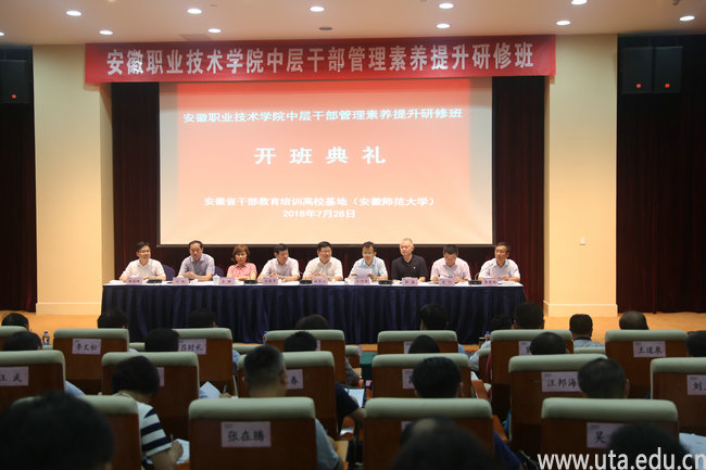 7月28日下午,举行专题培训开班仪式。全体校领导和中层干部参加了开班仪式,安徽师范大学党委书记顾家山出席开班仪式。党委书记亓四华作动员讲话。