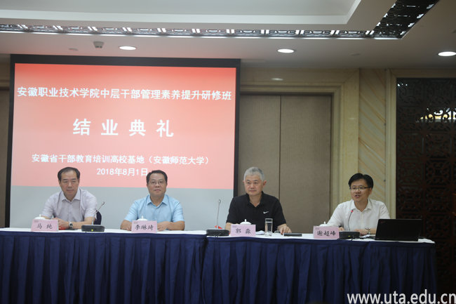 在培训闭幕式上,学员代表作了交流发言。安徽师范大学党委副书记李琳琦,党委副书记、纪委书记郭淼,党委委员马纯,安徽师范大学党委组织部副谢超峰为学员代表颁发结业证书。郭淼代表党委作总结讲话。