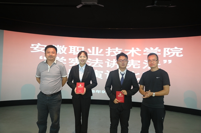 本网讯(党委宣传部通讯员 孙静)为深入学习领会习近平新时代中国特色社会主义思想,落实中央关于深入学习宣传和贯彻实施宪法的有关精神,选拔优秀选手代表学院参加安徽省演讲比赛,9月17日,由党委宣传部举办的“学宪法讲宪法”主题演讲比赛在教学E楼副楼报告厅举行。学院各二级学院党总支书记、党委宣传部负责人、院团委负责人以及相关教师应邀担任比赛评委。