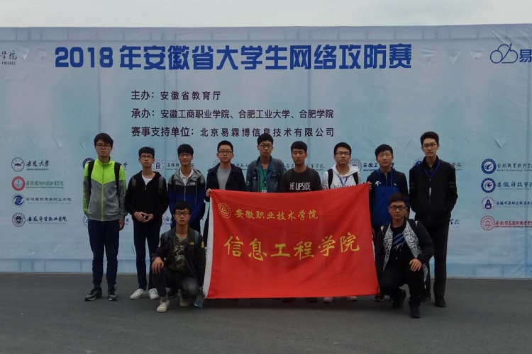 本网讯(信息工程学院通讯员 胡春雷)近日,2018年安徽省大学生网络攻防实战赛在安徽工商职业技术学院举行。经过紧张激烈的角逐,我校派出的4支代表队共取得1项一等奖、2项二等奖、1项三等奖的好成绩。