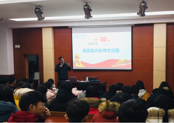 本网讯(团委通讯员沈天明)为深入学习贯彻习近平新时代中国特色社会主义思想,增强大学团员干部的爱国情怀,12月11日晚,校党委委员、副校长陈行在教A附楼二楼报告厅为大学生团干上了一堂“改革开放40年:民族复兴的伟大觉醒”的形势与政策课,全校200余名班级团支部书记参加学习。