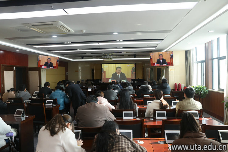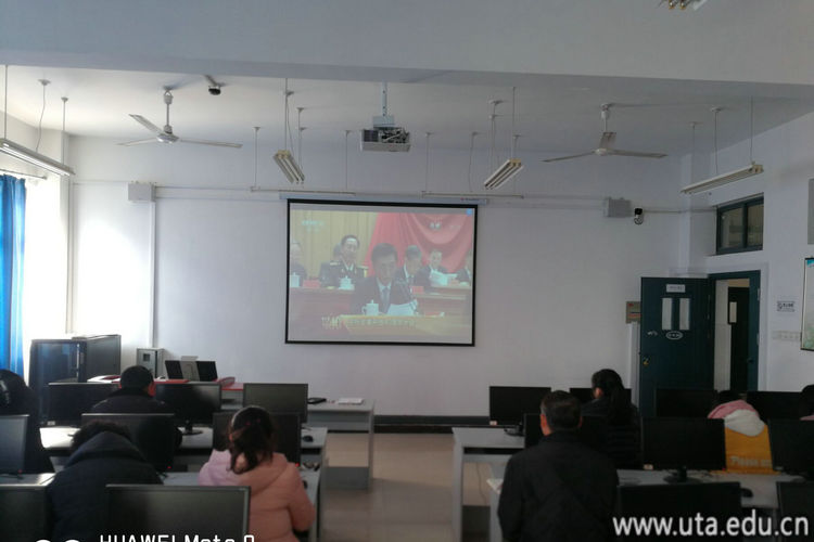 全体在校校领导,党委理论学习中心组成员,部分学生代表等150余人在图文信息中心九楼视频会议室集中收看大会现场直播。此外,各二级学院组织师生在学院会议室进行了集中收看,全校其他师生就近就便在食堂、寝室等收听收看了庆祝改革开放40周年大会现场直播。