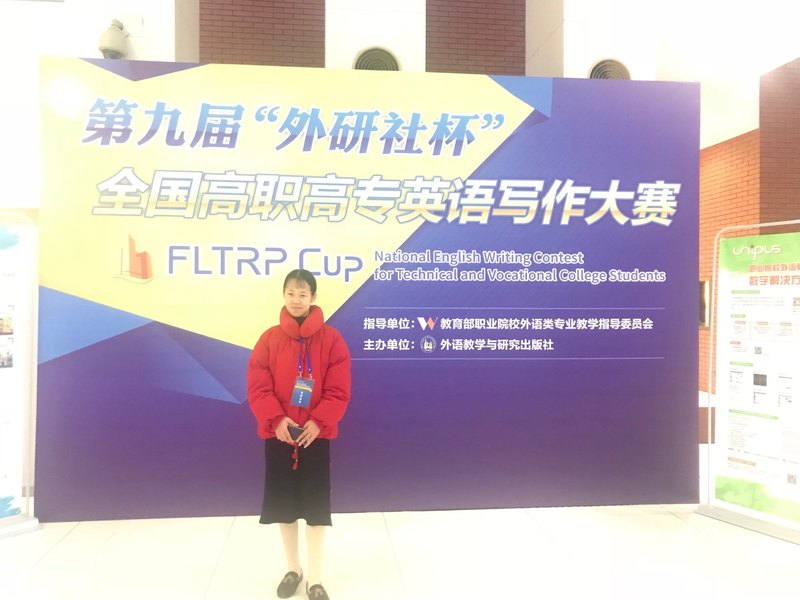 本网讯(基础教学部通讯员 赵荃)12月22日,第九届“外研社杯”全国高职高专英语写作大赛总决赛在北京举行,来自全国28个省、市、自治区的近200名选手参赛。我校英语教研室赵荃老师指导的商务英语1721班储文秀同学发挥出色,荣获英语专业组三等奖。