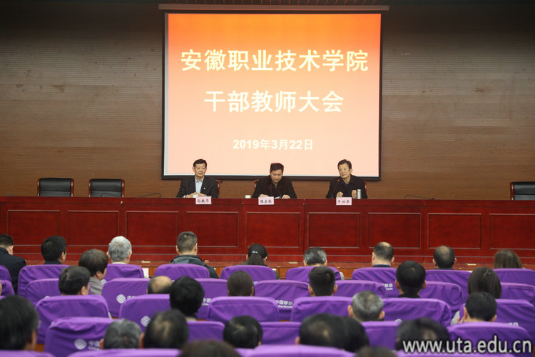 亓四华指出,2018年,学院党政领导班子深入学习贯彻落实全国高校思想政治工作会议精神和全国教育大会精神,团结带领广大师生员工,持续推进内涵建设和特色发展,党的建设卓有成效,高水平大学建设工作不断夯实,学院事业进入全新的发展时期。他强调,2019年,学院将进一步树牢“四个意识”,坚定“四个自信”,坚决做到“两个维护”。全面加强党的领导、落实立德树人根本任务,全面深化综合改革、促进事业健康发展,全面加强内涵建设、提高人才培养质量;为实现学院“十三五”规划目标和建设地方性技能型高水平大学而努力奋斗。