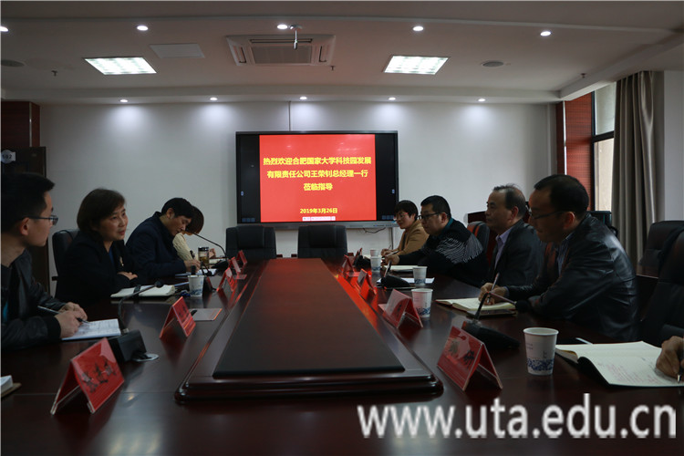 王荣钊对学院的热情接待表示感谢,并简要介绍了合肥国家大学科技园的基本情况和发展规划,充分交流了与学院开展科技成果转化的合作方案。