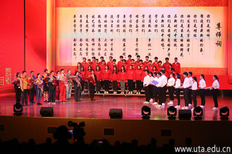 随后,活动现场还进行了“拜师仪式”,学生代表们怀着崇敬的心情为劳模工匠们献上鲜花并诵读《尊师词》。同时,劳模工匠们也向学生代表们回赠了纪念品以示鼓励。