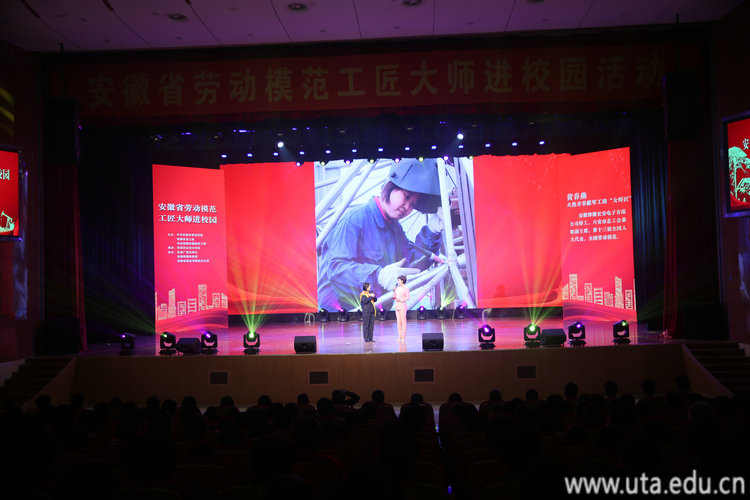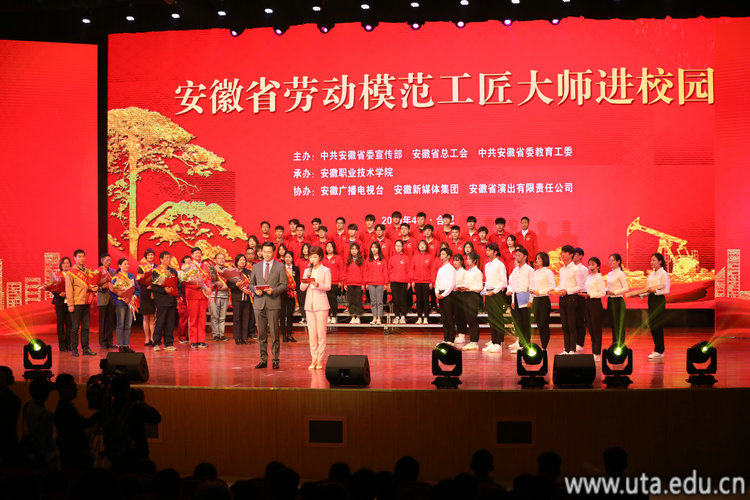 本网讯(宣传部通讯员 颜妍)为深入学习宣传贯彻习近平新时代中国特色社会主义思想和党的十九大精神,贯彻落实习近平总书记在全国宣传思想工作会议、全国教育大会和学院思想政治理论课教师座谈会上的重要讲话精神,创新思政教育方式,弘扬劳模工匠精神,培养德智体美劳全面发展的社会主义建设者和接班人,4月3日下午,安徽省“劳动模范工匠大师进校园”2019年第一场活动在我校大学生活动中心隆重举行。安徽省委常委、宣传部长虞爱华,省人大常委会副主任、省总工会主席李明,省总工会党组书记、副主席徐发成,省委教育工委副书记庆承松及省委宣传部、省总工会、省委教育工委相关部门负责人出席活动。我校党政领导班子成员亓四华、郭淼、陈行、马纯、杨林国及相关部门负责人参加活动。