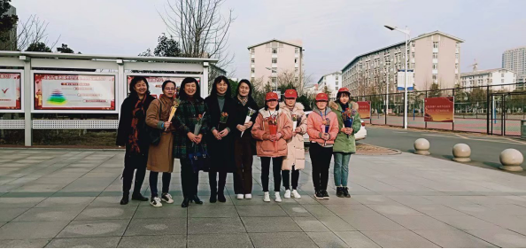 3月8日,60名志愿者分别在教学楼、实训楼、图文信息中心等处向学院女教工献花表达学生对老师的爱与祝福。