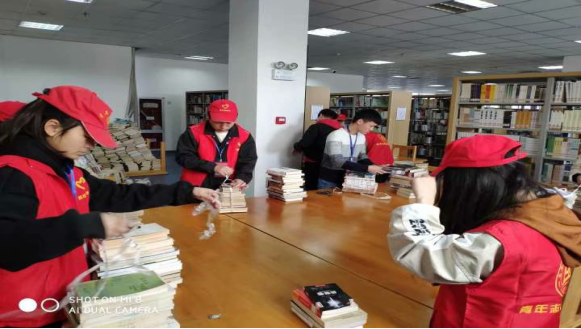 3月16日,校青联在图书馆老师的指导下开展书架清理、图书整理志愿活动。