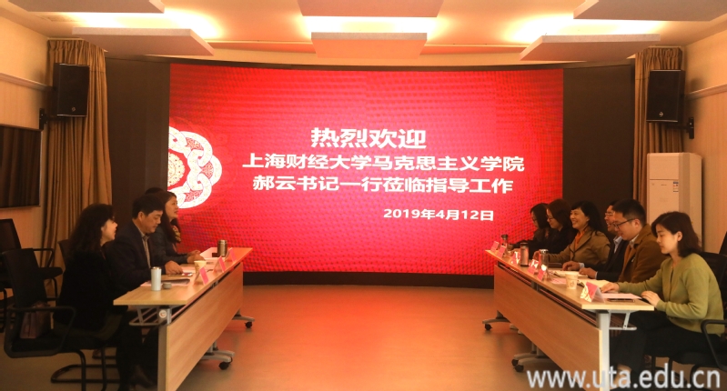 本网讯(宣传部 孙静 马院 李祥祥)4月12日上午,上海财经大学马克思主义学院直属党支部书记郝云、副院长刘光峰等一行来我校立德树人馆考察交流。我校马克思主义学院党政负责人及部分专兼职老师热情接待了郝云一行。