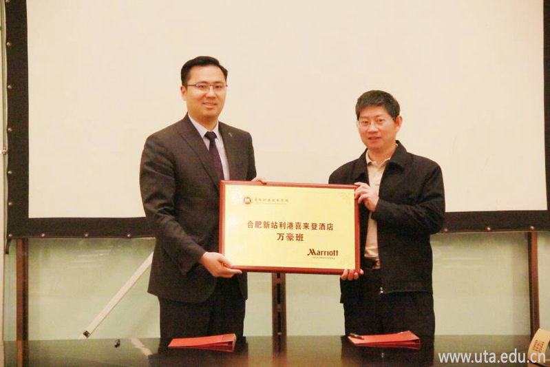 本网讯(管理学院通讯员 孙辉)4月16日,我校现代学徒制“万豪班”签约揭牌仪式在新站利港喜来登酒店隆重举行。党委委员、组织部部长杨林国,管理学院院长王培俊,管理学院党总支负责人李瑞勇,利港喜来登酒店总经理刘云啸,人力资源总监张蕾等及酒店管理专业全体师生参加本次活动。仪式由李瑞勇和张蕾主持。