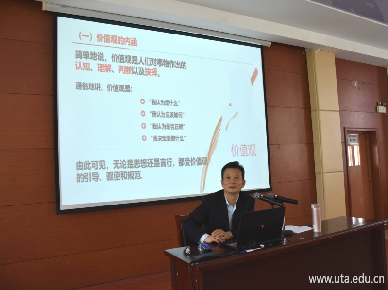 讲座伊始,亓四华便与同学们展开互动,在一问一答中引入价值观的概念。随后,他从价值观的重要意义、影响大学生树立正确价值观的因素和大学生如何树立正确的价值观三个方面展开阐述。讲座中,他联系同学们的学习和生活,旁征博引、娓娓道来,既有理论高度、思想深度,又具有很强的针对性、指导性。他还运用大量的实例加以佐证,深入浅出,内容丰富,引发学员们强烈共鸣。最后,亓四华鼓励同学们要早立凌云之志,敢于拥抱梦想,珍惜大好年华,勤奋学习,用学习实现梦想,用学习成就未来。