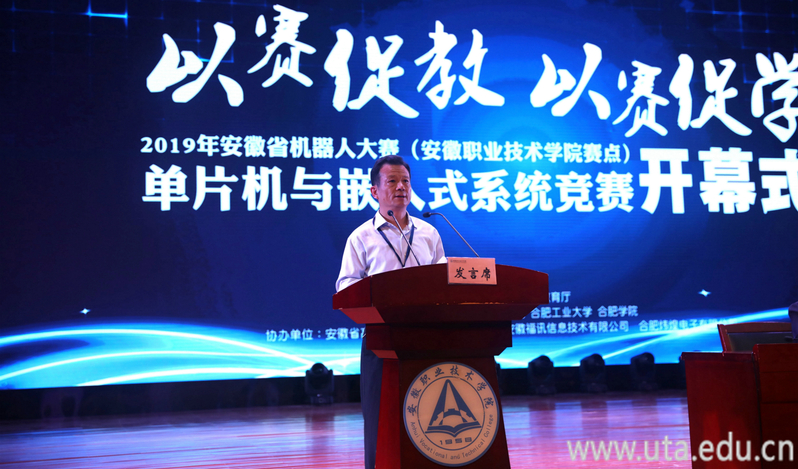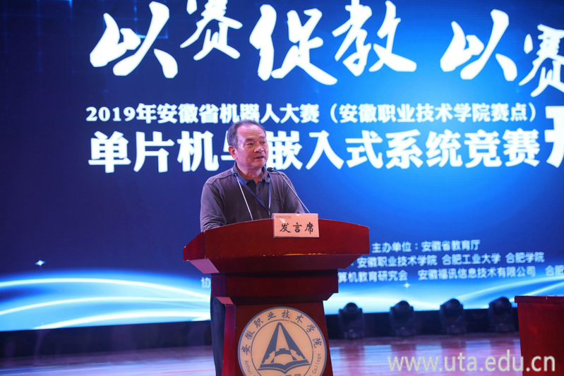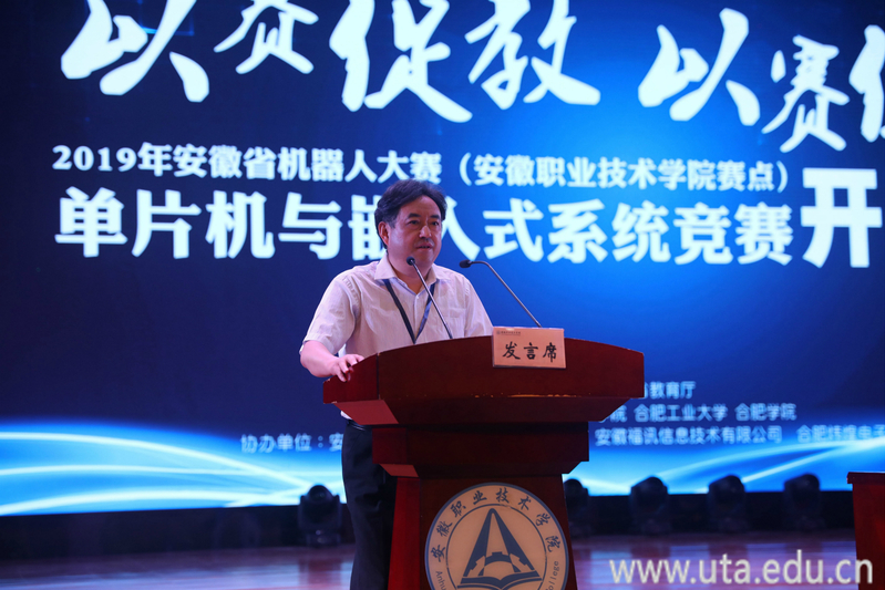 黄景荣代表大赛组委会,介绍了大赛的报名情况,阐述了举办此次大赛的意义,并对参赛师生提出了要求。胡学钢代表安徽省高等学院计算机教育研究会讲话,他向承办院校表示感谢,向为本次大赛辛勤付出的全体工作人员和志愿者表示感谢,并预祝比赛选手能够赛出风格,取得好成绩。