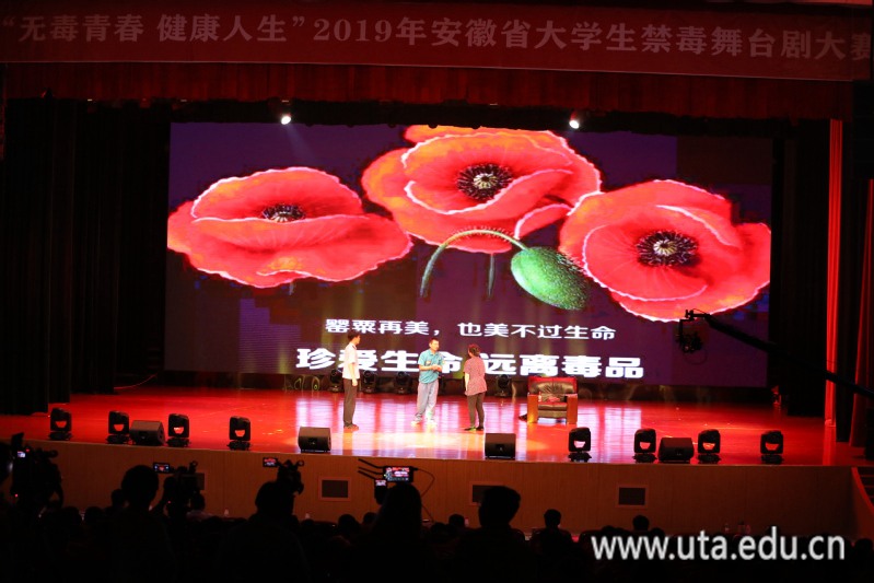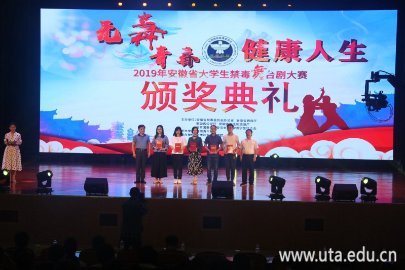 本次全省决赛共分预决赛、总决赛两轮。比赛中,来自安徽三大赛区的12支参赛团队紧紧围绕“无毒青春,健康人生”这一主题,以讴歌新时代禁毒人民战争为主旋律,用生动有趣的表演给现场观众带来了强烈的警示与震撼。经过现场评审,安徽省黄梅戏艺术职业学院的舞台剧作品《老坟土》获大赛金奖,文达信息工程学院的《拯救》等两件作品获银奖,我校选送的由杨刚逸、姚星月等同学主演的原创话剧《赞助有毒》荣获铜奖,学院荣获大赛优秀组织单位。