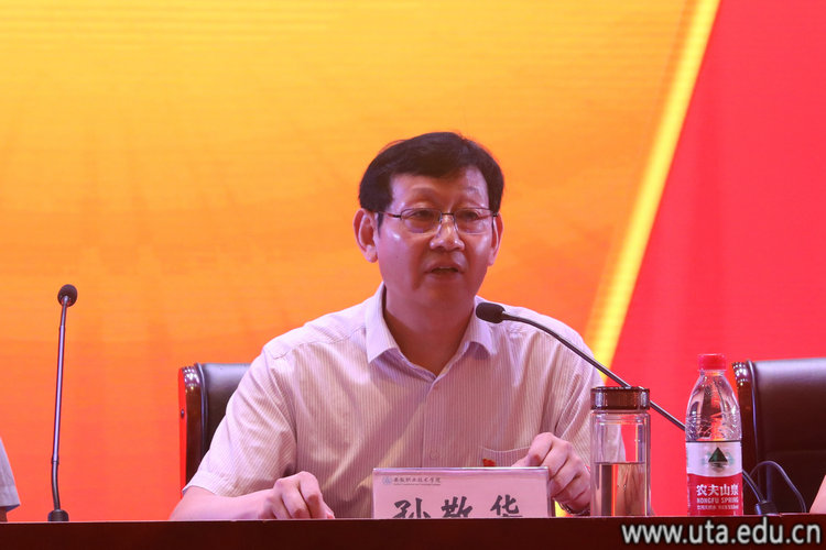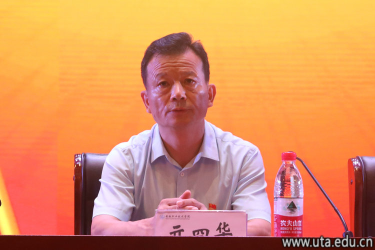 亓四华在讲话中重温了党的98年光辉历程和伟大成就,从严格履行主体责任,持续强化理论武装,打造高素质干部队伍,夯实基础固本强基等四个方面回顾总结了学院一年来党的建设和事业发展工作中取得的可喜成绩。并对全校党员和干部提出四点希望与要求:一要始终牢记党的初心和使命,以坚定的理想信念勇立时代潮头;二要全面加强党的领导和党的建设,以强烈的使命担当勇做党建先锋;三要牢牢把握立德树人根本任务,以高度的责任心勇创“大思政”工作格局;四要扎实推进重点任务落实,以锐意进取的拼搏精神勇建事业新功。