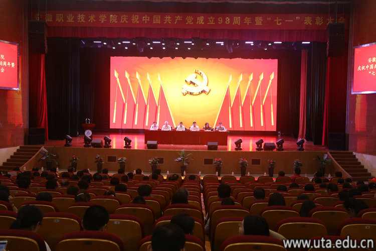 本网讯(党委组织部通讯员 柳润泽)6月25日下午,学院在大学生活动中心隆重召开庆祝中国共产党成立98周年暨“七一”表彰大会,党委书记亓四华,党委副书记、校长孙敬华,党委副书记、纪委书记郭淼,党委委员、副校长史锋,党委委员马纯、杨林国,全体党员和副科以上干部参加会议。会议由孙敬华主持。