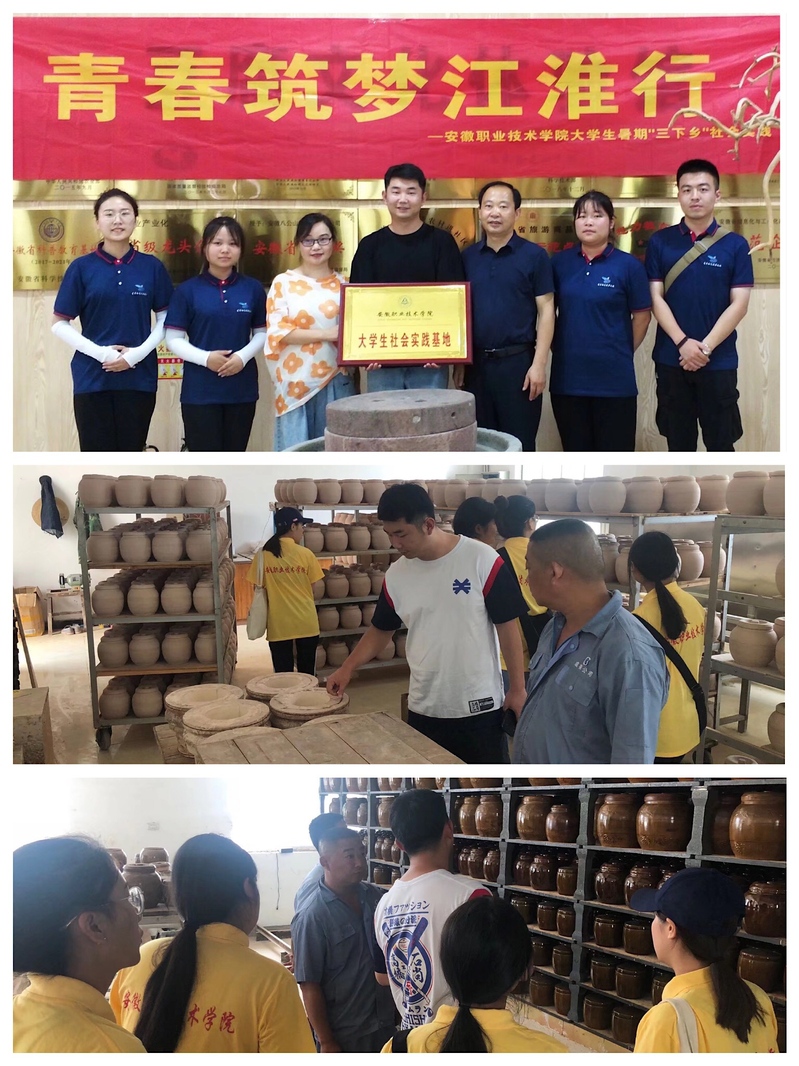 在淮南市八公山乡,队员们考察了互联网+创业基地、农村电商等项目,参观了非物质文化遗产“寿州窑”传承馆、寿县楚文化博物馆、寿县非遗文化传承馆——寿县香草馆。在工作人员的带领下深入了解寿州窑的历史文化、烧造技艺以及发展现状,在工匠大师的指导下,体验拉坯、上釉等制瓷工艺,感受传统文化的魅力。为了深入了解八公山豆腐文化及豆腐产业发展情况,队员们前往中国豆腐村——大泉村开展实践调研活动,在村民胡学兵的豆腐作坊中体验传统豆腐制作的工艺流程。队员们还发挥专业特长,就当地土特产品,如豆制品、大白桃、梨等产品的包装设计、营销策略、销售渠道出谋划策,将在校所学融合于实践,为当地土特产品包装设计提供新思路和新方法。