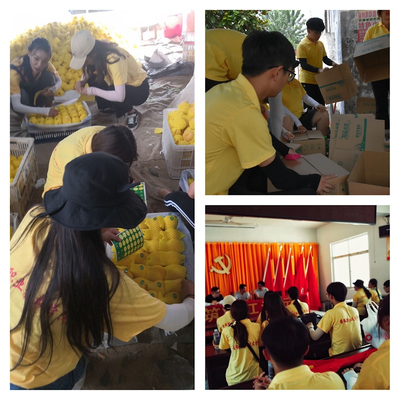 在宿州市埇桥区褚兰镇谢炉村,村支部书记谢兴刚向队员们介绍了谢炉村的桃园基地、草原牧业、养殖扶贫情况,并带领队员参观了桃园基地。随后的五天时间,队员们每天从驻地步行四公里前往桃园基地开展“扶贫助农,黄桃致富”实践活动,队员们分工明确,不顾天气炎热,帮助果农采摘桃子、贴标签、打包装箱,忙得不亦乐乎。在老师的带领下,同学们还通过互联网渠道进行黄桃销售,五天内就帮助果农从网上销售黄桃三十箱。利用休息时间,队员们还开展了中小学生防溺水安全教育宣传、敬老院志愿服务、参观爱国主义教育基地等活动。